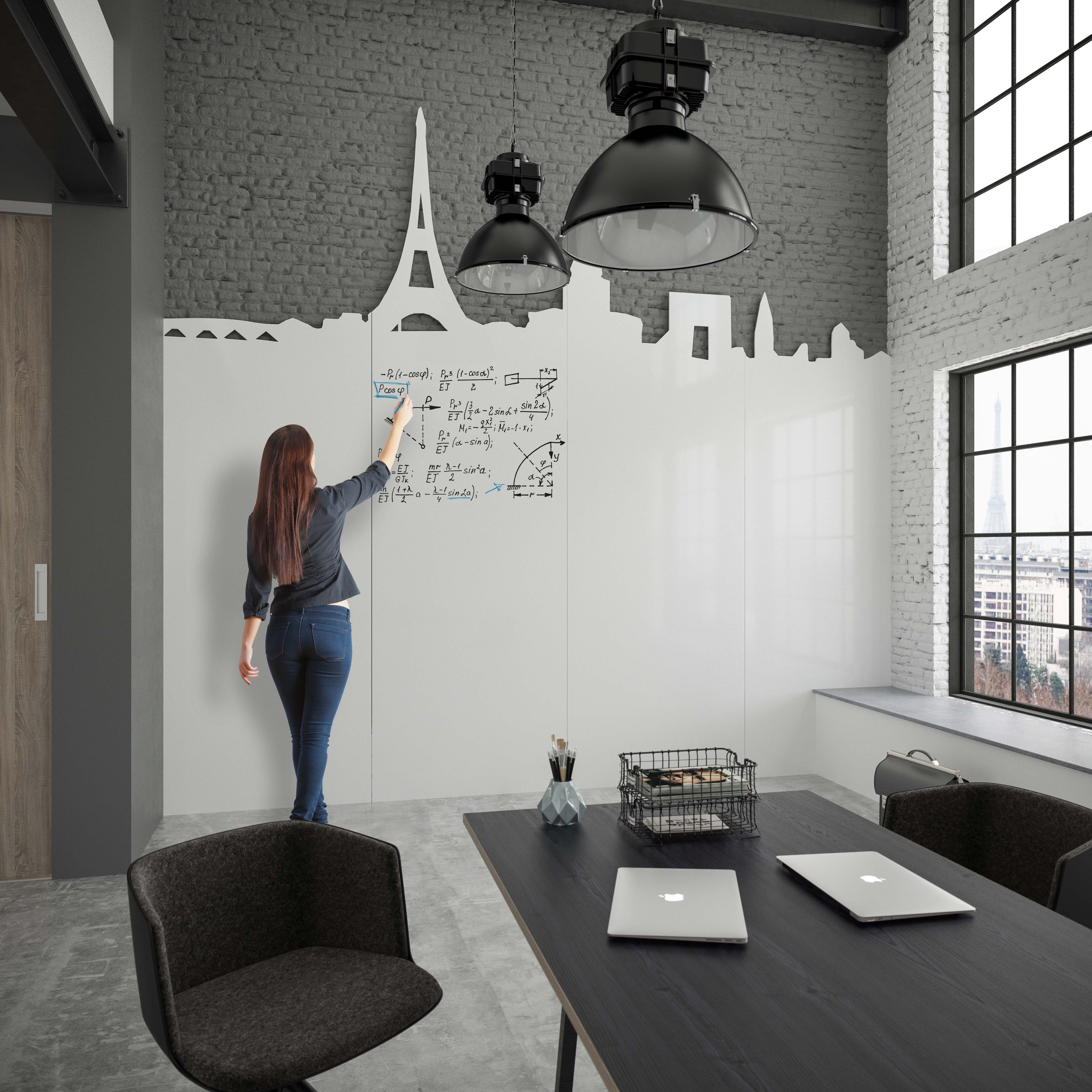 Chameleon Writing Sharp är skarpa paneler som är länkbara för att skapa en enda, oavbruten skrivyta i alla storlekar. Panelerna kan monteras horisontellt såväl som vertikalt. Detta låter dig skriva över hela väggens bredd.